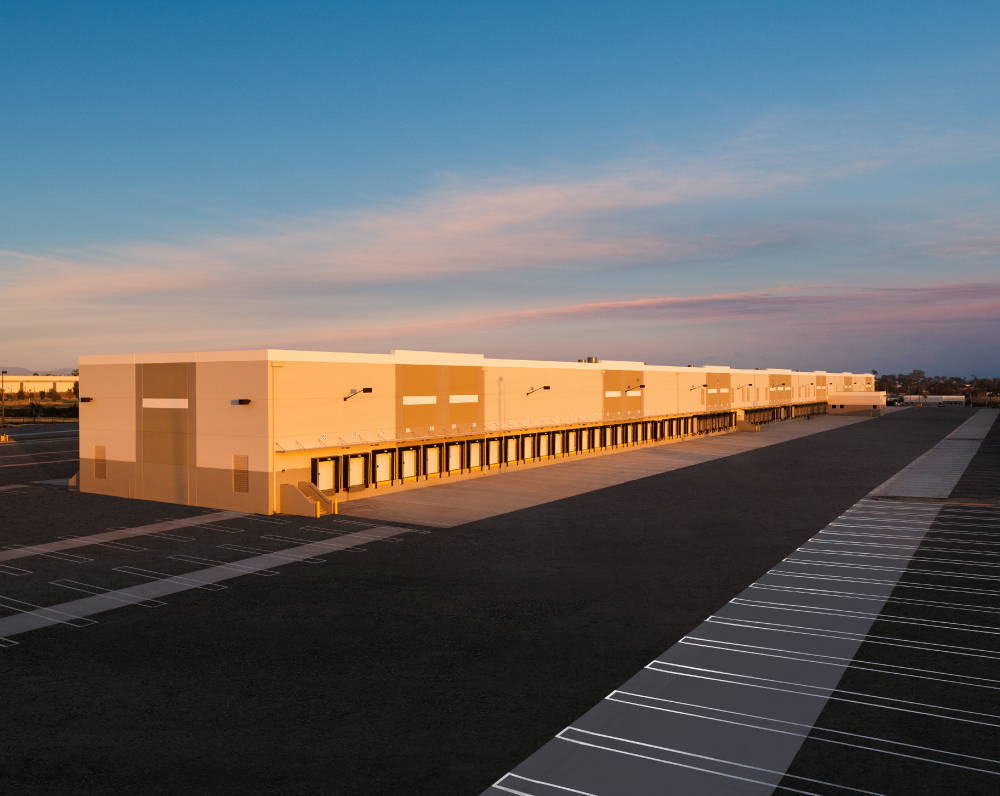 Site improvements include an on-site bioswale stormwater clarification system to manage runoff and support environmental compliance, along with seventy-seven architectural sound walls constructed along the site perimeter to mitigate noise impacts. The facility was engineered to support automated operations, large-scale logistics, and long-term adaptability.